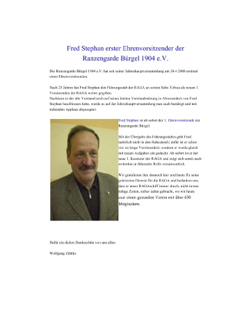 Fred Stephan ist ab sofort der 1. Ehrenvorsitzende der