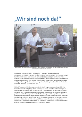 Haben das Lachen nicht verlernt: Vorsitzender Tobias Stephan (rechts) und Sprecher Robert Pies wissen aber, dass die Session 2020/21 den Verein