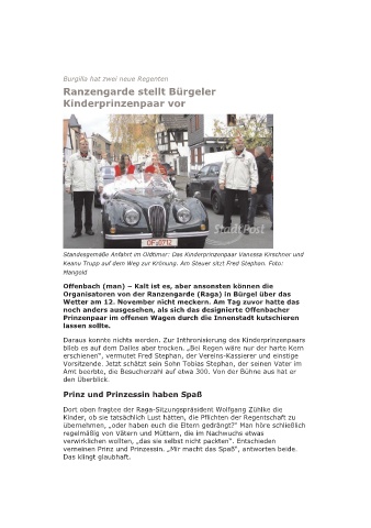 Standesgemäße Anfahrt im Oldtimer: Das Kinderprinzenpaar Vanessa Kirschner und