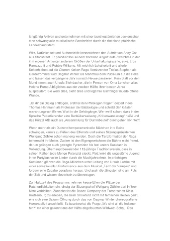 Ramazzotti und Robbie Williams. Mit reichlich Lokalkolorit und allerlei
