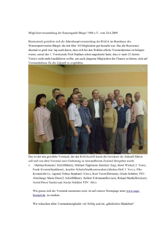 Mitgliederversammlung der Ranzengarde Bürgel 1904 e.V. vom 24.4.2008