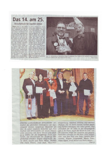 ehrt. In seLner Laudatio bedankte sieh Fred schiießltch flir 50 Jahre in der Rar.aengarde