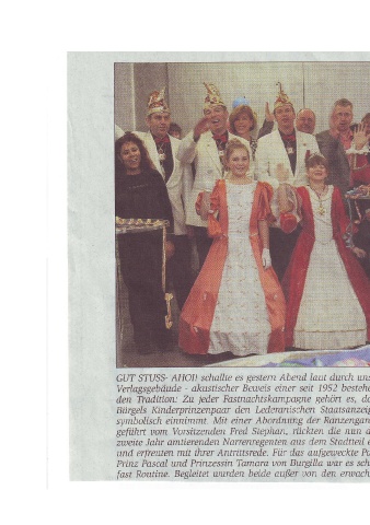 Bürgels KLnderprinzenpoar den Lederanischen Stoatsaraeiger den. Zam l)}Jrihrigen der Bürgeler Eingemeindung zeigt er